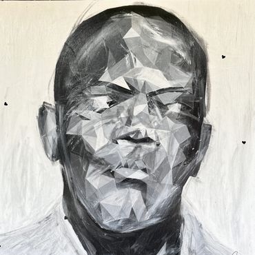 My commissioned work is interpretive rather than literal. I listen closely to the subject, story, or energy behind the request, then translate it through my own visual language. The result is a one-of-a-kind piece that reflects both the essence of the subject and my artistic perspective – unexpected, personal, and emotionally driven.