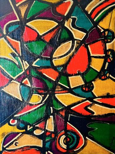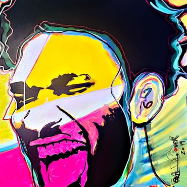My artwork is rooted in curiosity, intuition, and the constant push to explore what lives beneath the surface. Each piece is built through layers—of color, texture, symbolism, and story—often blending fine art with street influence, found objects, and cultural references. Some works begin with intention, others with instinct, but all evolve through experimentation and risk. I’m drawn to contrast: chaos and control, humor and gravity, the familiar and the abstract. These pieces are not meant to explain everything – they’re meant to invite you in, spark interpretation, and live differently with every viewer and every space they occupy.
